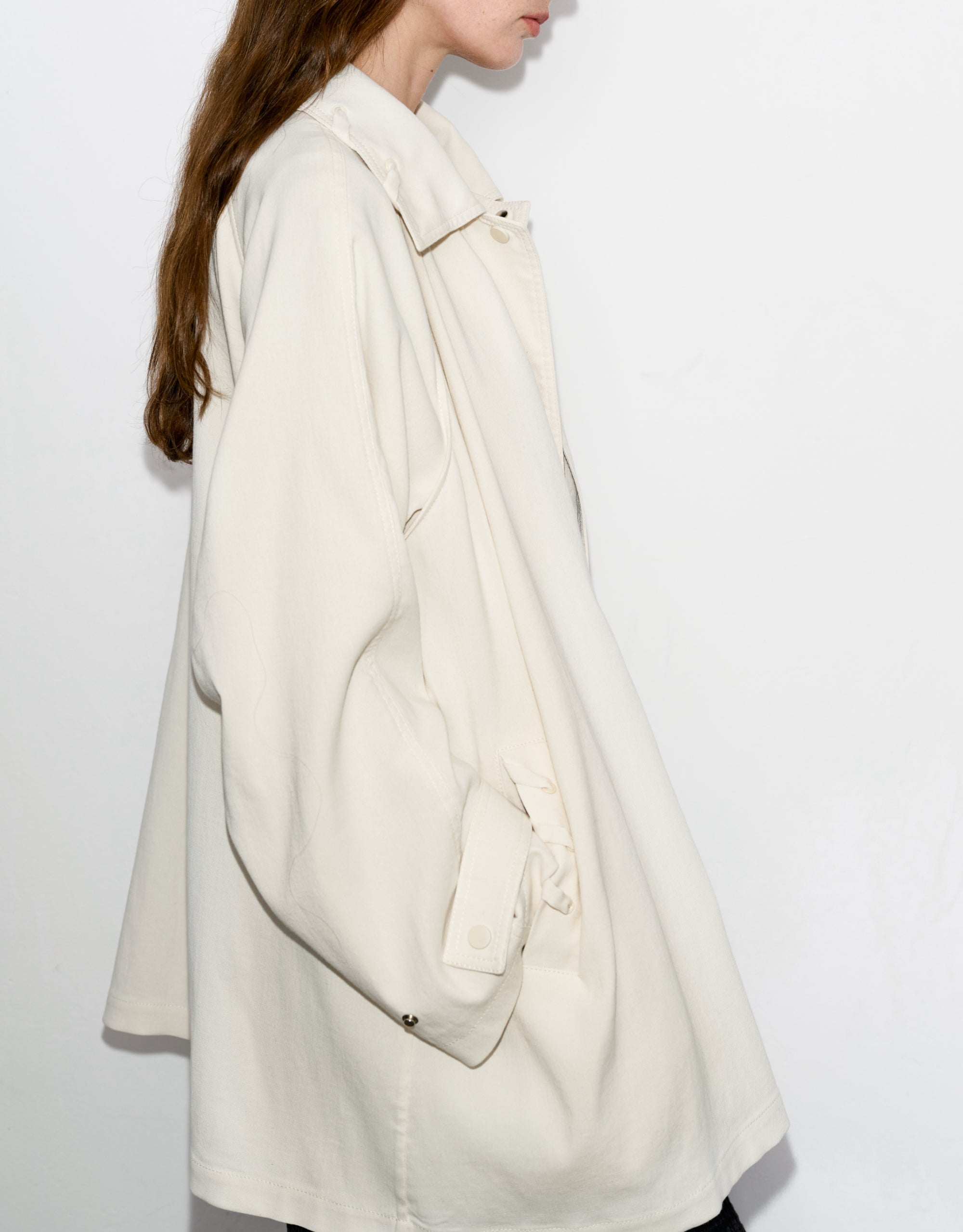 Crafted from a cotton-poly-linen blend, this top feels breathable and softly textured for everyday ease. The relaxed cut features a drawstring neckline, dropped shoulders, and wide sleeves that create a natural, flowing shape. A versatile piece that layers well across seasons, balancing refined structure with quiet comfort.