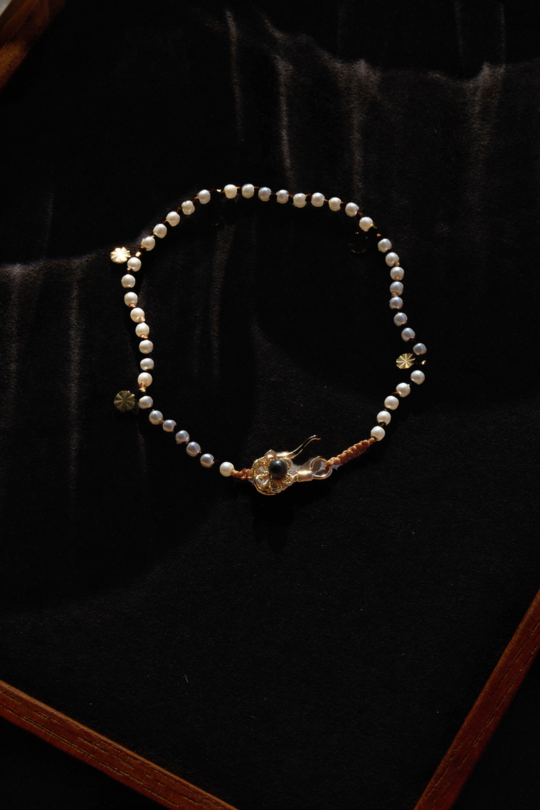 The Golden Edge Pearl Bracelet pairs soft luminosity with a restrained, modern sensibility. Smooth pearls meet subtle gold accents and a sculpted clasp for a balanced, feminine finish. Crafted from gold-plated copper with carefully braided detailing, it offers a refined texture that complements everyday dressing with quiet confidence.
