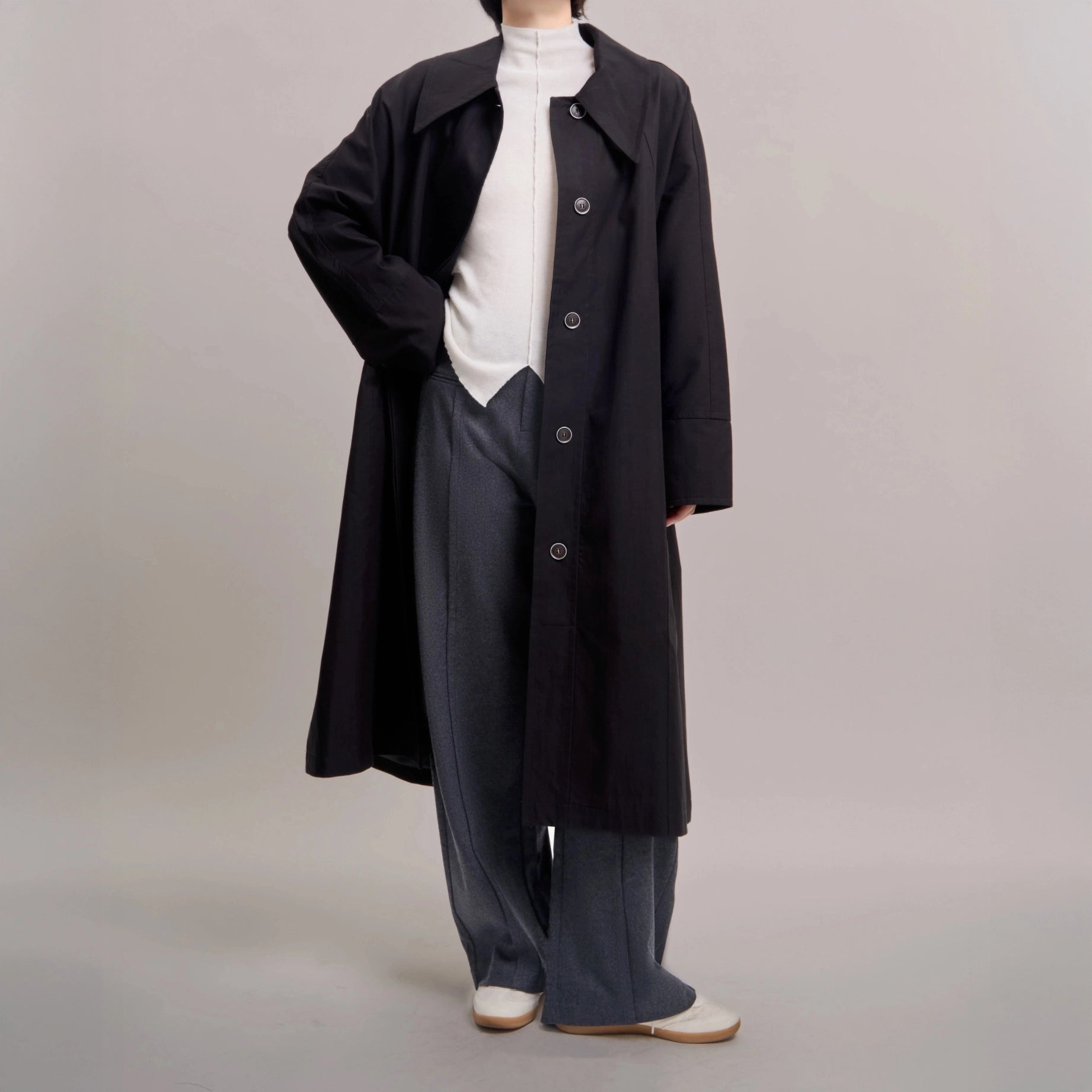 这款黑色风衣剪裁利落,穿着舒适。蝙蝠袖和腰带设计勾勒出流畅简洁的廓形,让您轻松应对日常活动。这款百搭外套既适合休闲场合,也适合正式场合。随附同色系腰带。