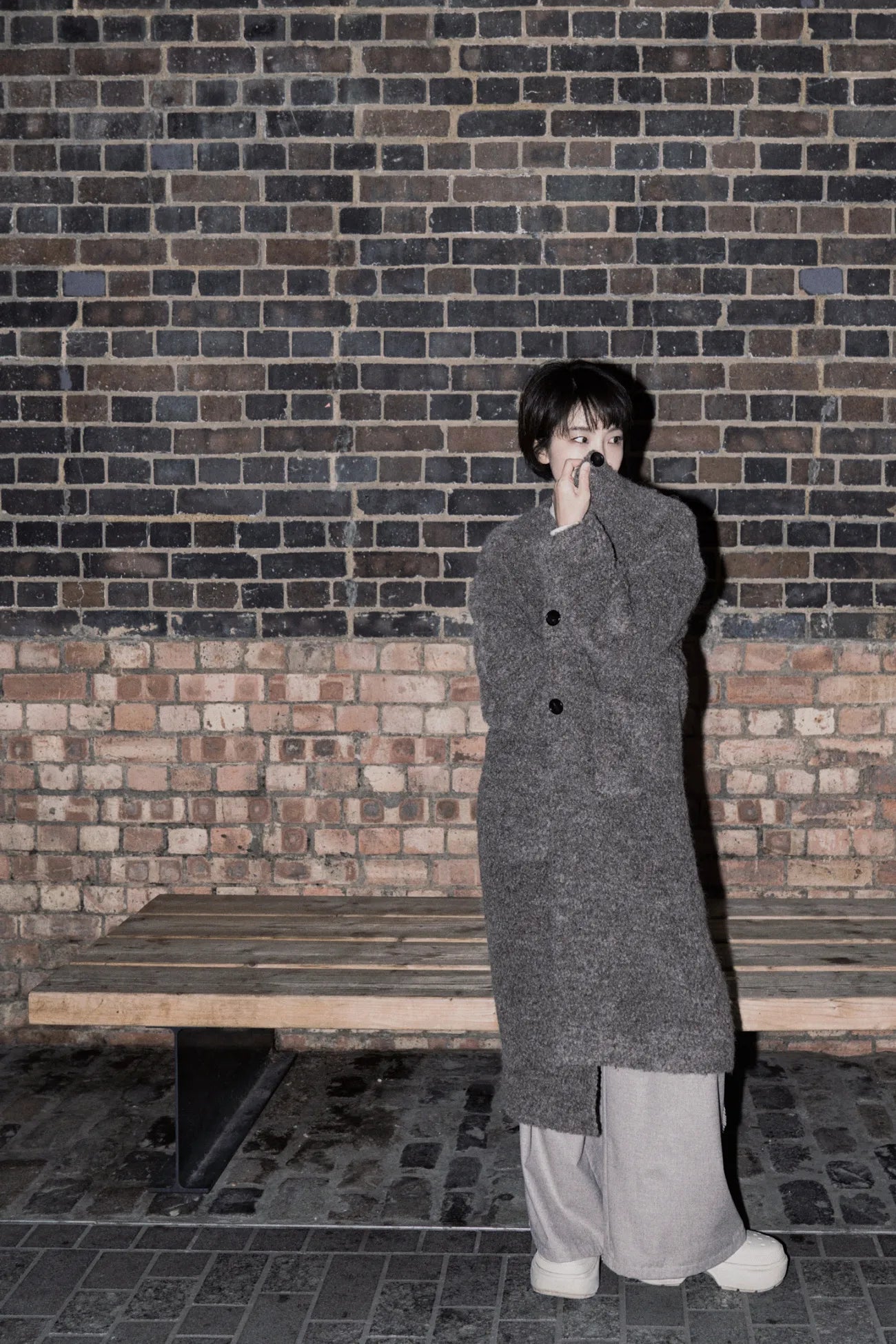 雪夜灰无领羊毛大衣