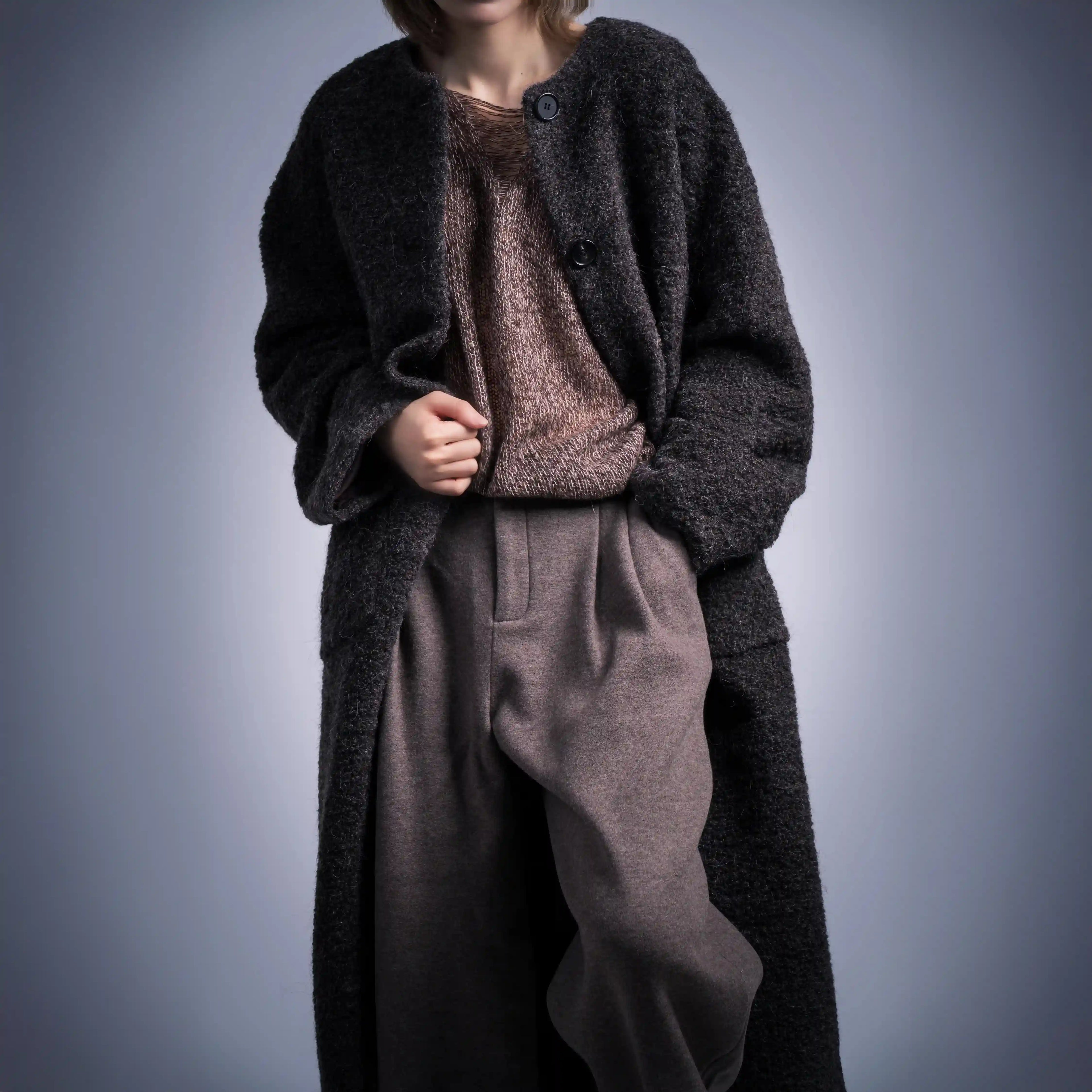 这款羊毛混纺上衣采用环保莱赛尔纤维和羊绒混纺面料制成,触感顺滑透气,并具有天然的吸湿排汗功能。宽松的法式廓形,垂坠感极佳,适合各种身材。轻盈透气,适合温暖的天气穿着,也方便在凉爽的季节叠穿,是四季皆宜的必备单品。